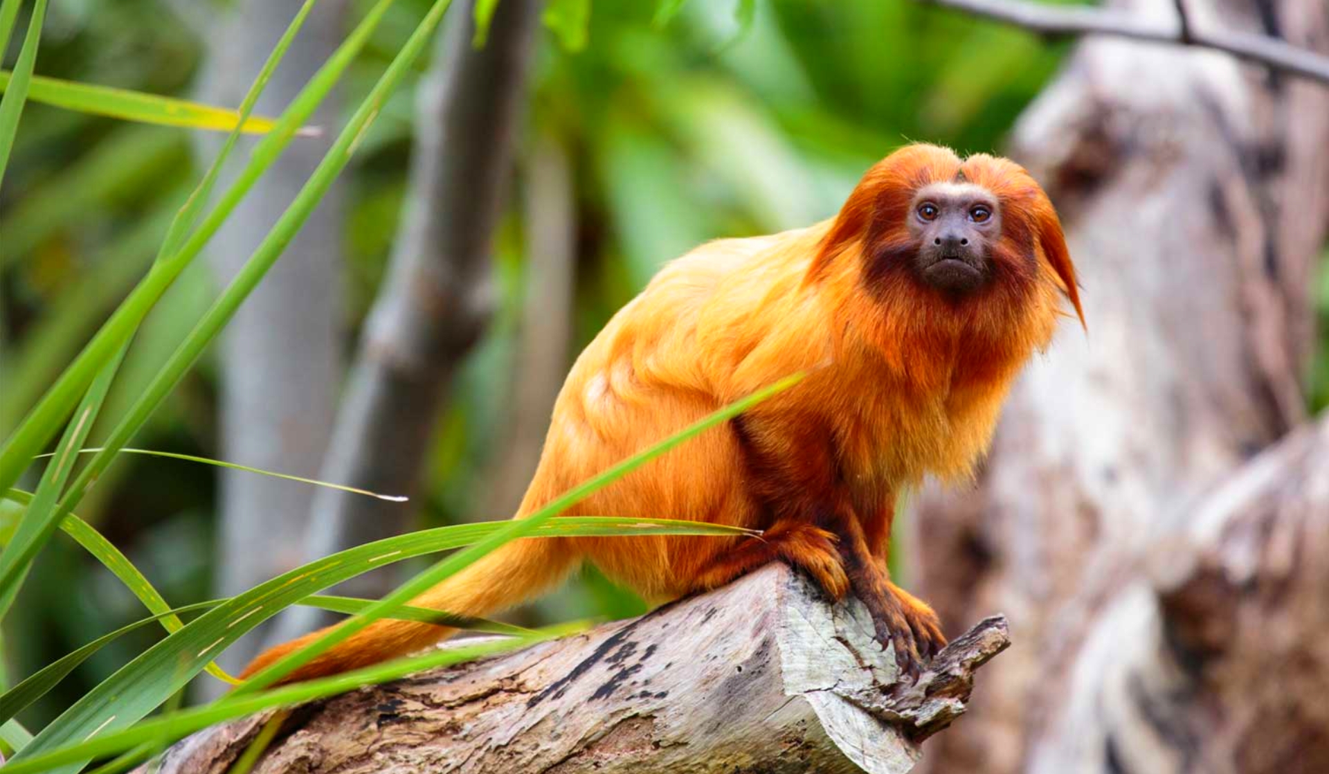 The golden lion tamarin (Leontopithecus rosalia) is a captivating and critically endangered primate native to the Atlantic coastal forests of Brazil. It is a member of the New World monkey family and is well-known for its striking appearance and vibrant golden-orange fur, which resembles a lion's mane, earning it the name "golden lion tamarin."
