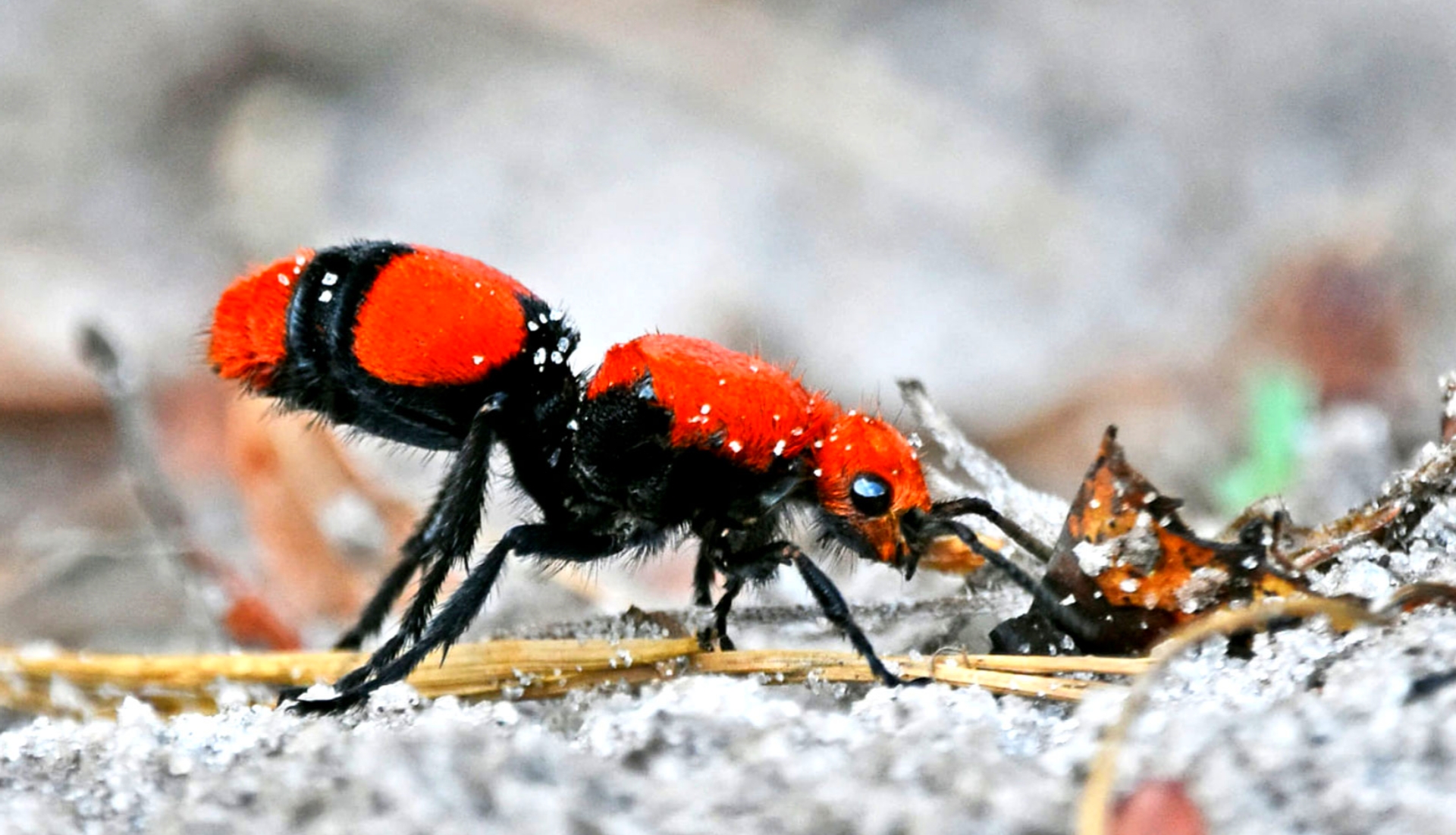Warning Coloration: The bright coloration of velvet ants serves as a warning to potential predators, indicating that they are venomous and best left alone.